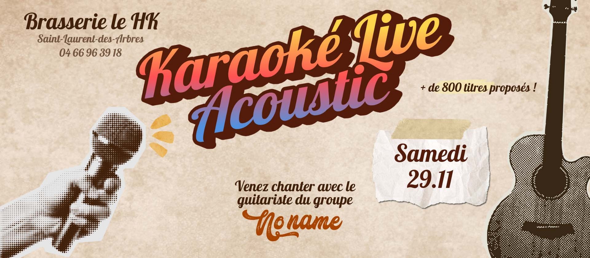 Pour une ambiance plus intimiste, No Name propose également une formule en duo acoustique avec le Karaoké Live Acoustic à la Brasserie le HK à Saint-Laurent des Arbres où sont proposés plus de 800 titres!